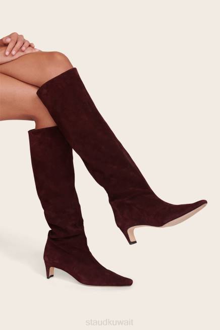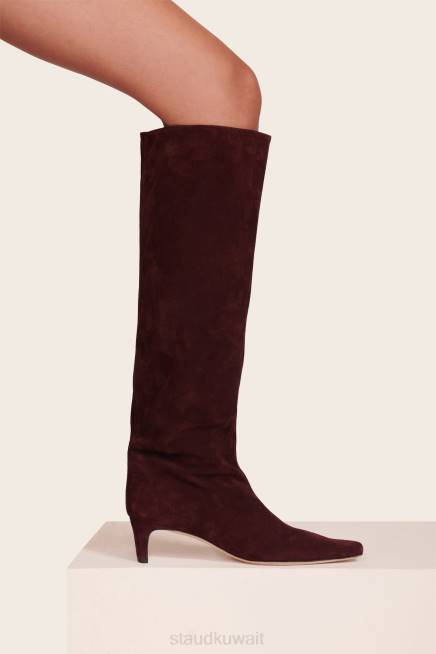 الحذاء عبارة عن حذاء طويل يصل إلى الركبة مصنوع من الجلد المدبوغ ومزين بمقدمة مدببة وتصميم كعب رفيع. P>