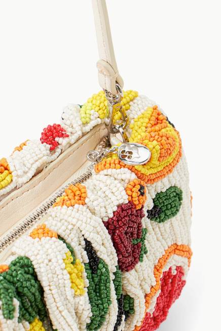تحديث مطرز يدويًا لحقيبة Ruched المميزة. الحبة المزيّنة بالخرز هي حقيبة قابلة للتحويل يمكن ارتداؤها كحقيبة كتف أو معصم أو حقيبة يد. P>