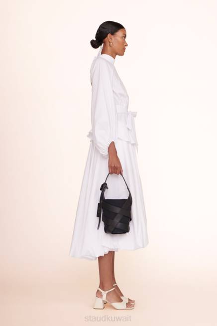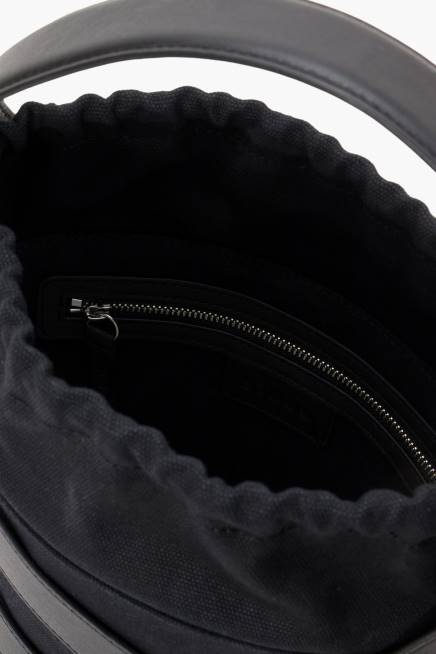 حقيبة قماشية مهيكلة مع سلة بحزام جلدي متشابك ، تتميز حقيبة دلو الخلية بحقيبة كتف أو محمولة اختيارية.