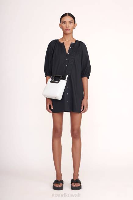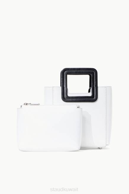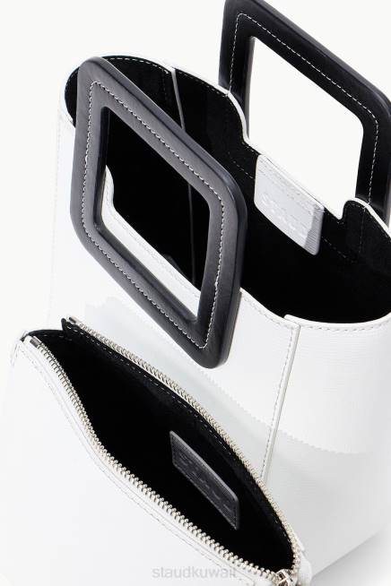STAUD 42R0821 حقيبة جلدية صغيرة شيرلي نحيف أبيض أسود مُكَمِّلات