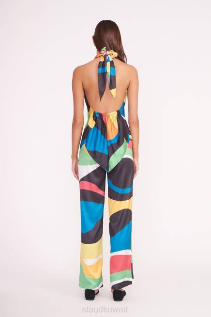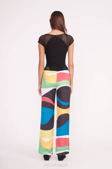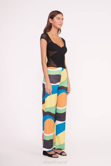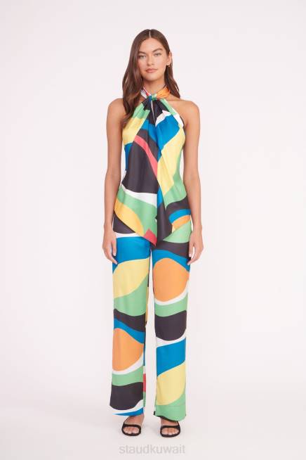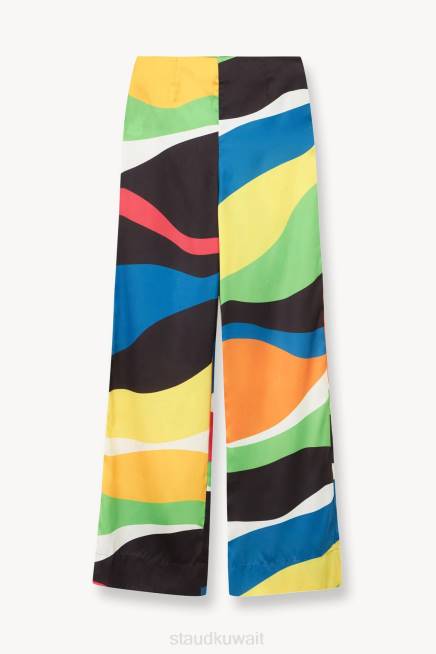 بنطلون ساق مستقيمة بارتفاع متوسط من نسيج قطني متعدد الألوان مطبوع عليه موجة رخامية. يتميز هذا النمط بسحاب مخفي للإغلاق ويمكن ارتداؤه كمجموعة مع سترة مارثا المطابقة. P>