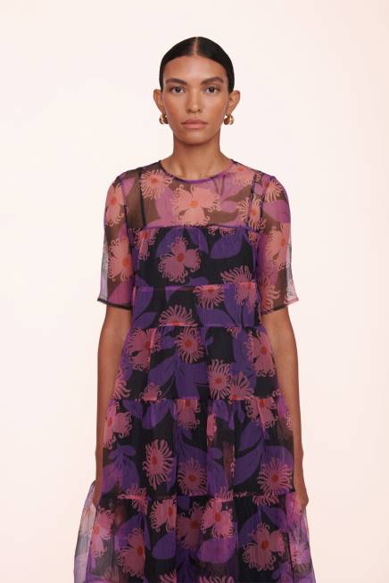 فستان الياقوتية المصنوع من الأورجانزا الشفافة هو فستان ماكسي متدرج مع زر إغلاق خلفي واحد. يتضمن هذا النمط زلة داخلية قابلة للإزالة. Span>