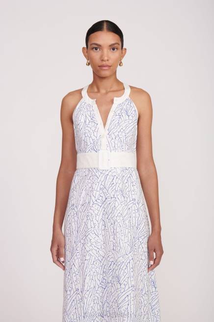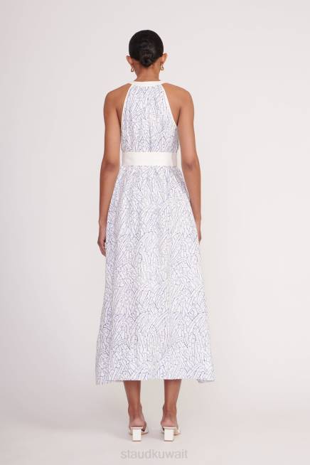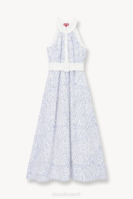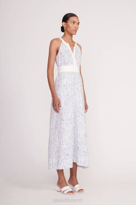 STAUD 42R0111 فستان ليزيت نحيف النخيل الأزرق ملابس