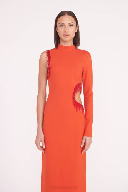 STAUD 42R017 فستان كيرستن نحيف النار الحمراء ملابس