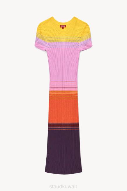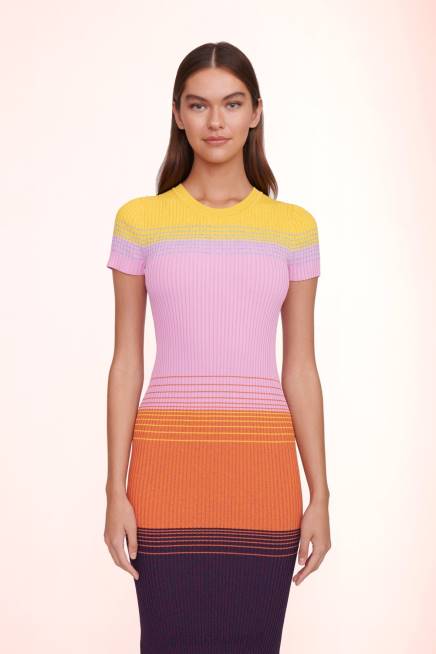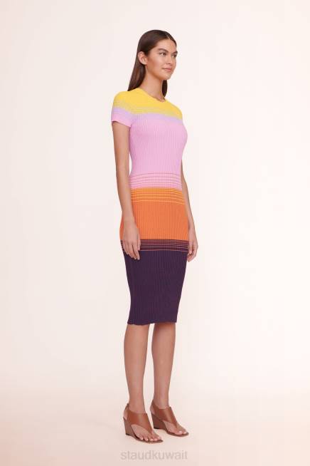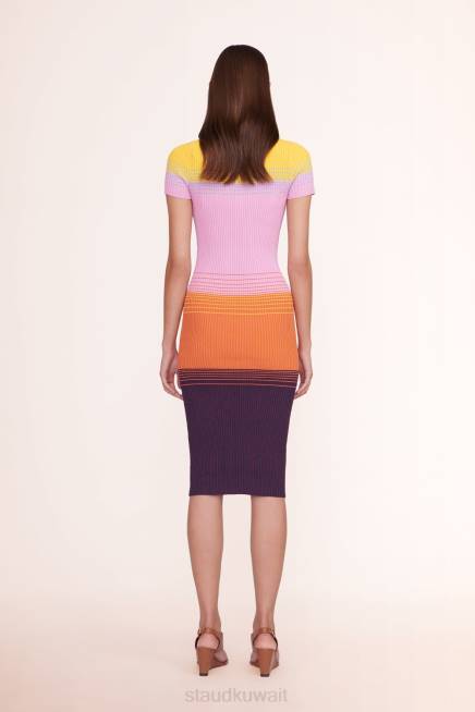 فستان ضيق بأكمام قصيرة مصنوع من نسيج الضلع المميز لدينا. فستان كولين يتميز بطول متوسط ونمط متعدد الألوان. P>