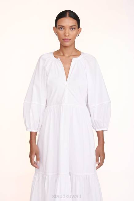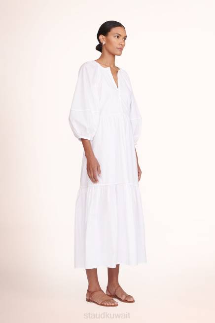 STAUD 42R0243 فستان ديمي نحيف أبيض ملابس