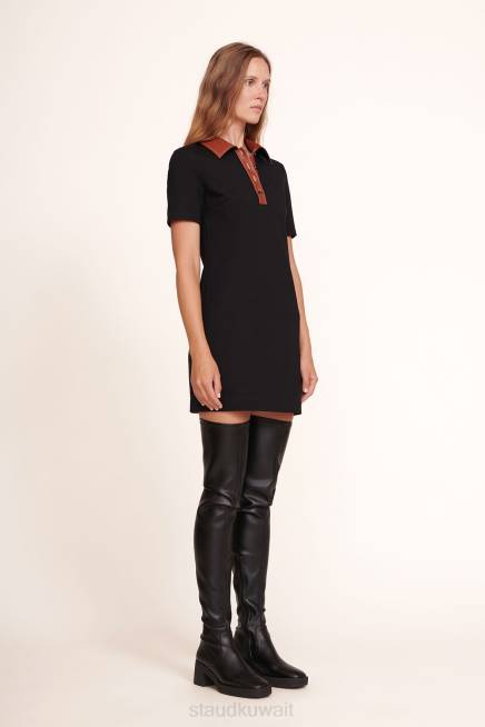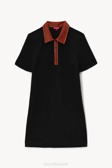 فستان جاي هو فستان بولو قصير بأكمام قصيرة وياقة جلدية نباتية وتفاصيل بلاكيت.