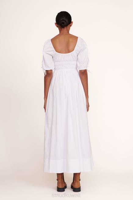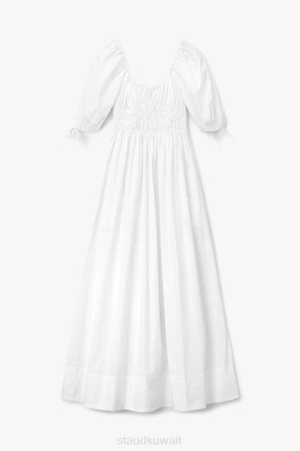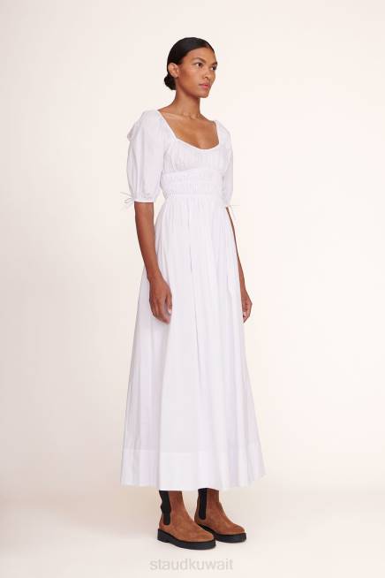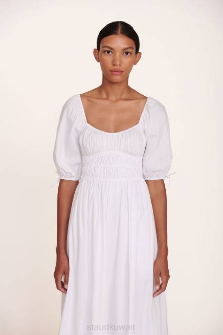 فستان أنثوي من البوبلين القطني بأكمام 3/4 ، فستان ماكسي فاي يتميز بقصة ضيقة عند الخصر وتنورة على شكل حرف A. P>