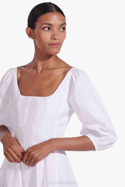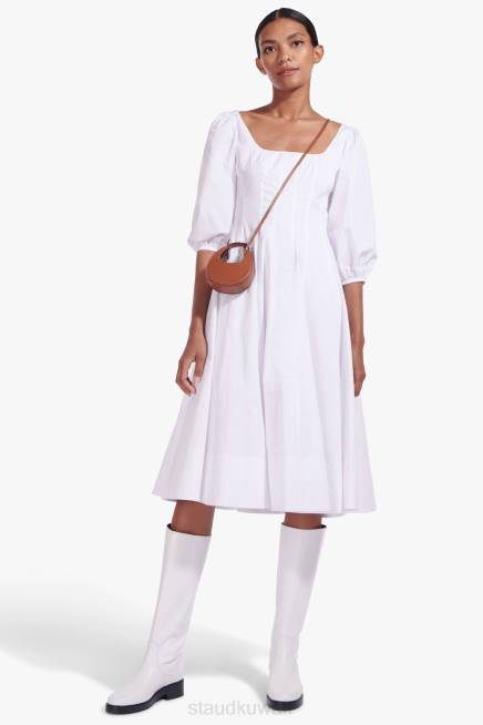 STAUD 42R0315 فستان ينتفخ نحيف أبيض ملابس