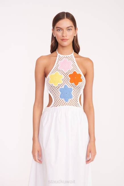 STAUD 42R038 فستان كايلي نحيف وطي الأبيض ملابس