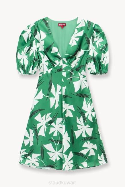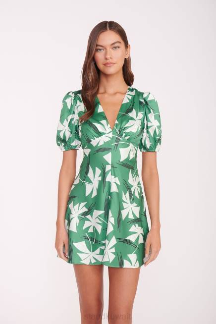 فستان ميلا الصغير هو فستان قصير الأكمام يتميز بفتحة رقبة على شكل V وخصر إمبراطوري. يتوفر هذا التحديث الموسمي في نسيج Z المطبوع باللون الأخضر المطبوع على شكل دولاب الهواء وبه سحاب مخفي للإغلاق على الجانب. P>