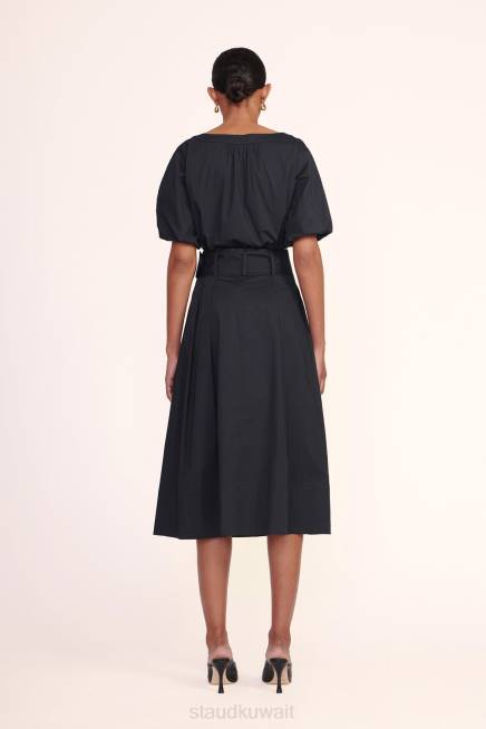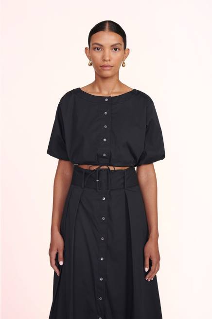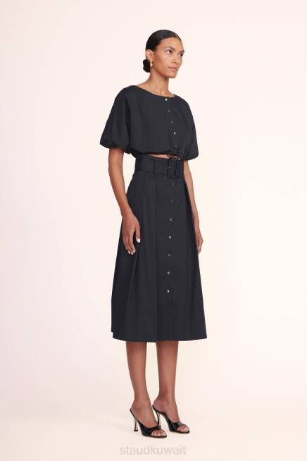 تنورة بأزرار على شكل حرف A مع طيات وحزام عريض. تنورة كينجزلي مصنوعة من قماش البوبلين القطني المطاطي وتكمل مجموعة متناسقة عند إقرانها مع الجزء العلوي من Ellington. P>