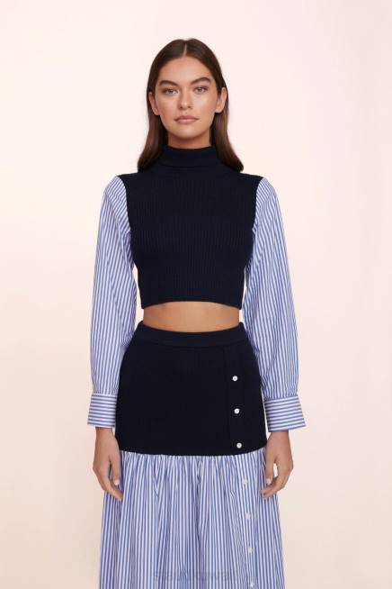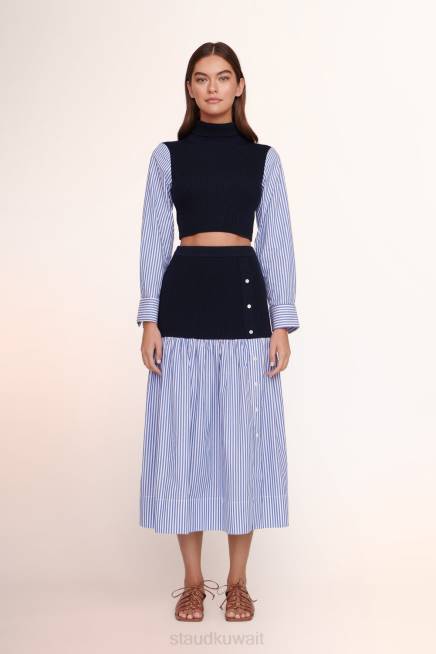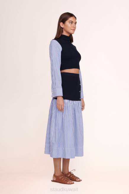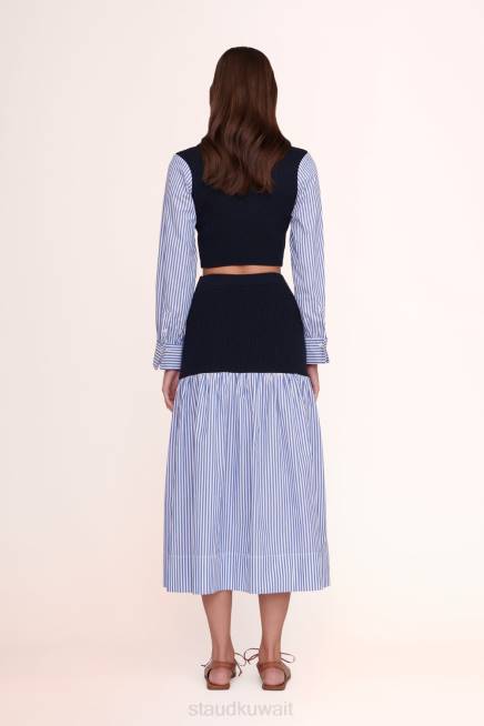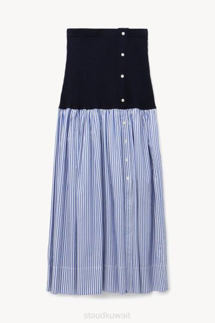 STAUD 42R0505 تنورة مايلي نحيف شريط أبيض أزرق كحلي ملابس
