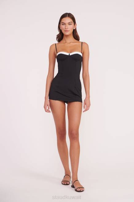 STAUD 42R0689 فستان سباحة مايف نحيف أسود أبيض ملابس
