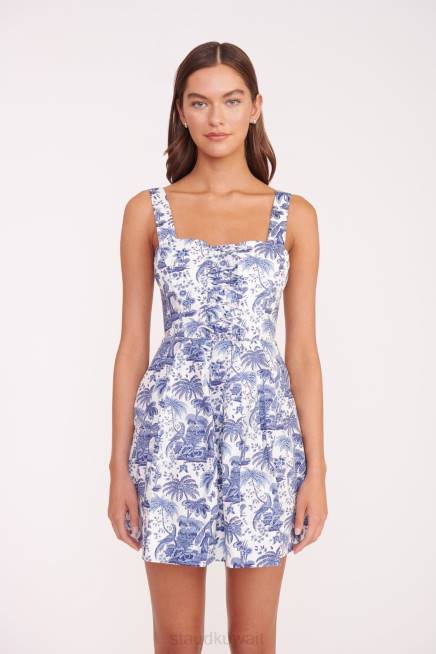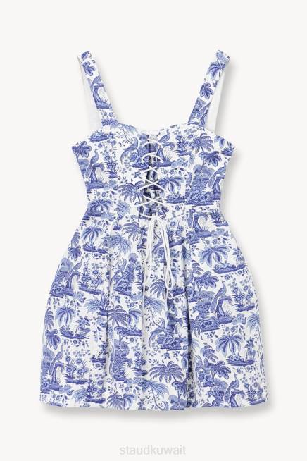 STAUD 42R071 فستان ميني ساتون نحيف تويلي أزرق ملابس