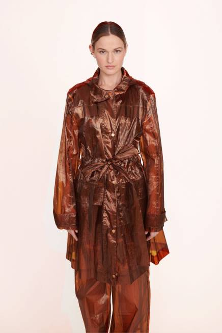 معطف من السيلوفان مع رباط عند الخصر ، يتميز معطف أوليفر بغطاء سحاب قابل للإزالة.