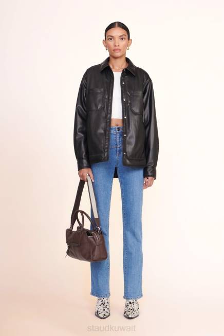 STAUD 42R0622 سترة من الجلد النباتي نحيف أسود ملابس
