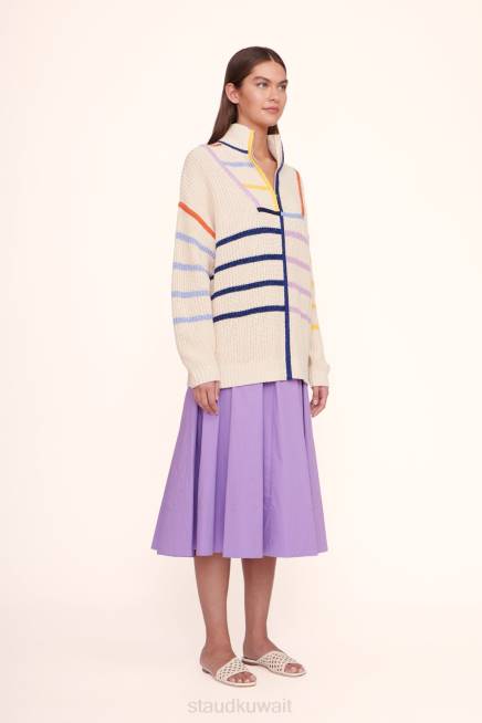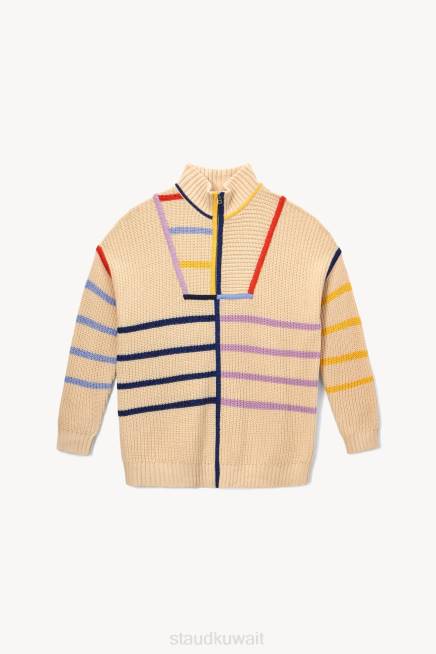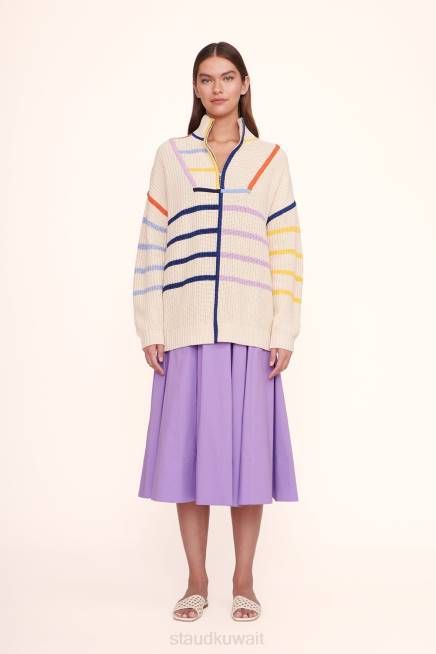 كنزة الهامبتون السميكة المصنوعة من القطن المحبوك هي سترة كبيرة الحجم على طراز صديقها بنمط شريطي مشرق وملون. يتميز هذا النمط بتفاصيل نصف مضغوطة في المقدمة. P>