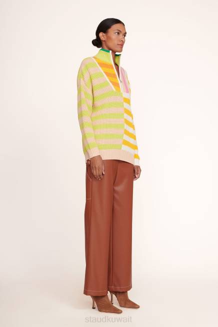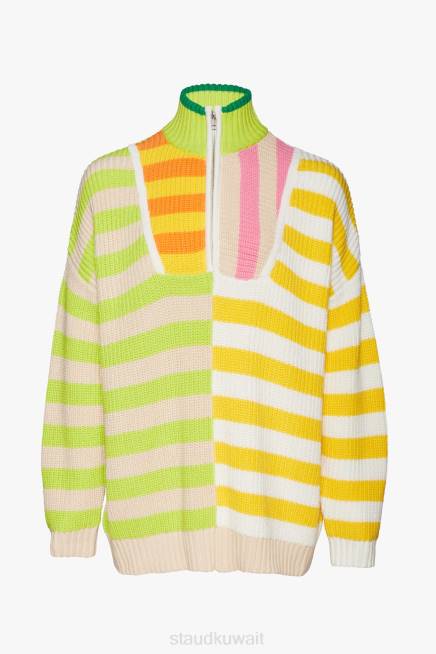كنزة الهامبتون السميكة المصنوعة من القطن المحبوك هي سترة كبيرة الحجم على طراز صديقها بنمط شريطي مشرق وملون. يتميز هذا النمط بتفاصيل نصف مضغوطة في المقدمة. P>