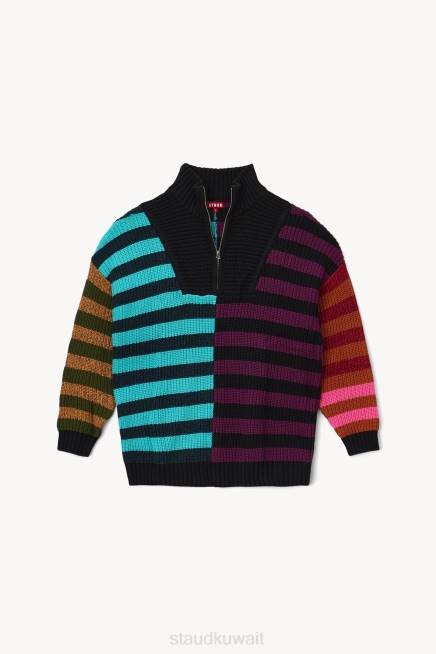 كنزة الهامبتون السميكة المصنوعة من القطن المحبوك هي سترة كبيرة الحجم على طراز صديقها بنمط مخطط موسمي وملون. يتميز هذا النمط بتفاصيل نصف مضغوطة في المقدمة. P>