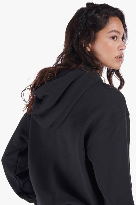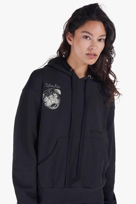 هذه السترة ذات الوزن الثقيل تتميز بشعار ستود مطرز وجيب كنغر وقلنسوة برباط.
