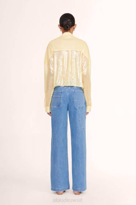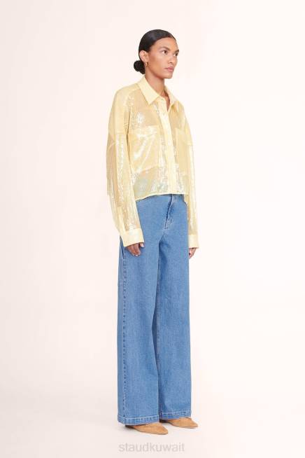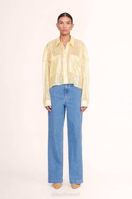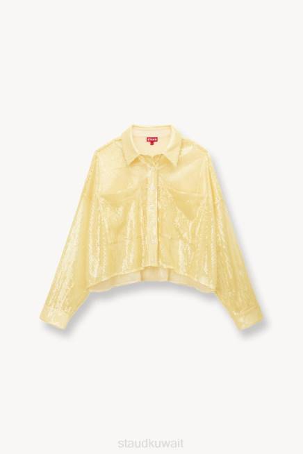 قميص قصير بياقة مع جيوب رقعة ، بايتون مُقطع من قماش الترتر غير المُبطن وله مقاس كبير. P>