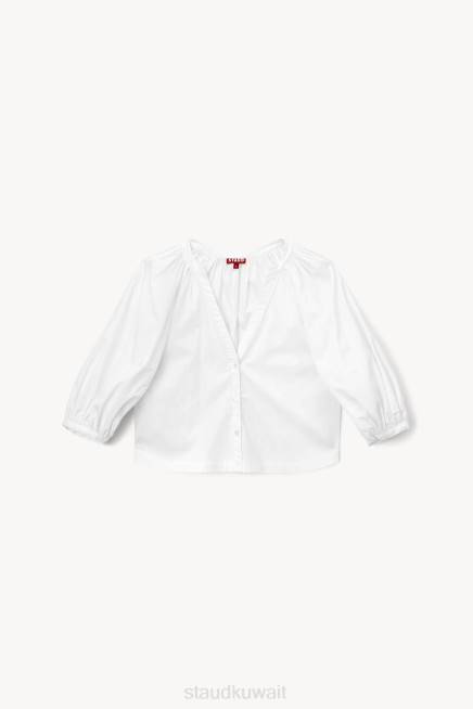 الجزء العلوي من الشبت عبارة عن زر قطن بوبلين أسفل بأكمام 3/4 منفوخة. يمكن ارتداء هذا القميص الكلاسيكي على مدار السنة. Span>