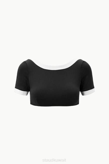 STAUD 42R0749 توب بيكيني بأكمام قصيرة زنبق نحيف أسود أبيض ملابس