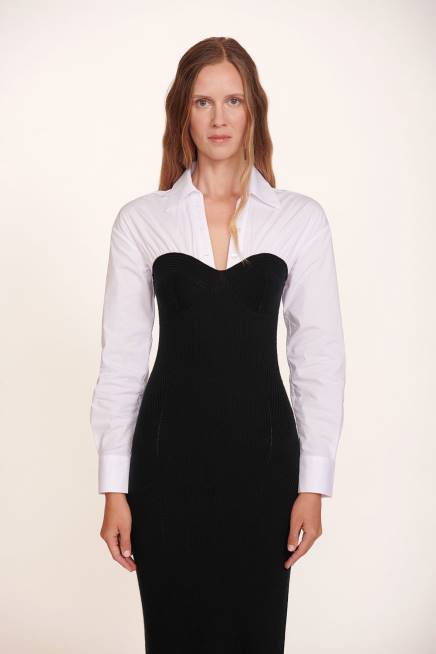 STAUD 42R0277 فستان عسلي نحيف أسود أبيض ملابس