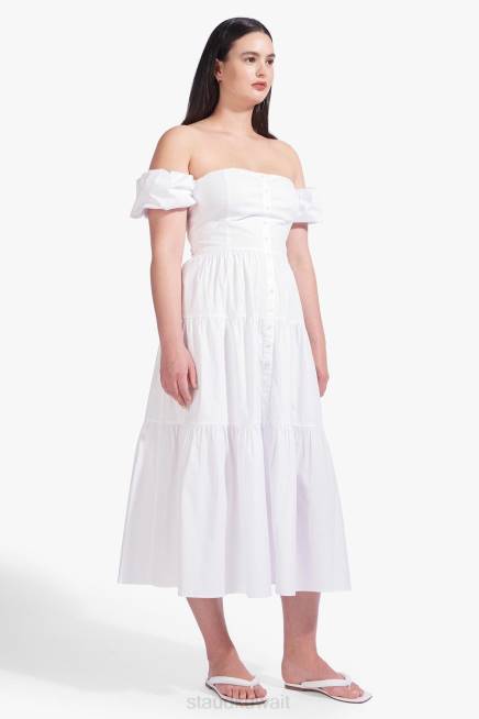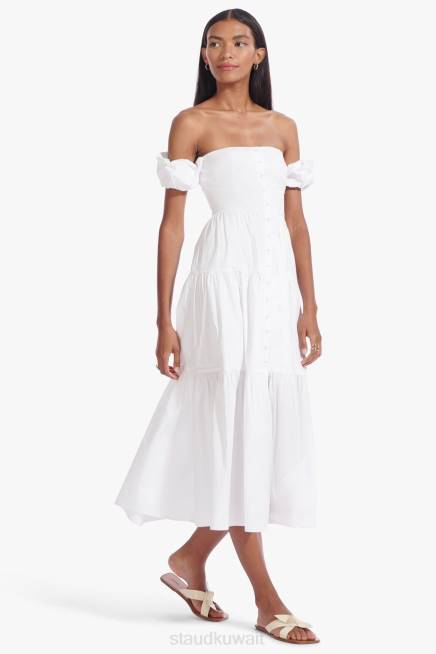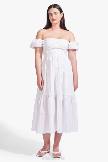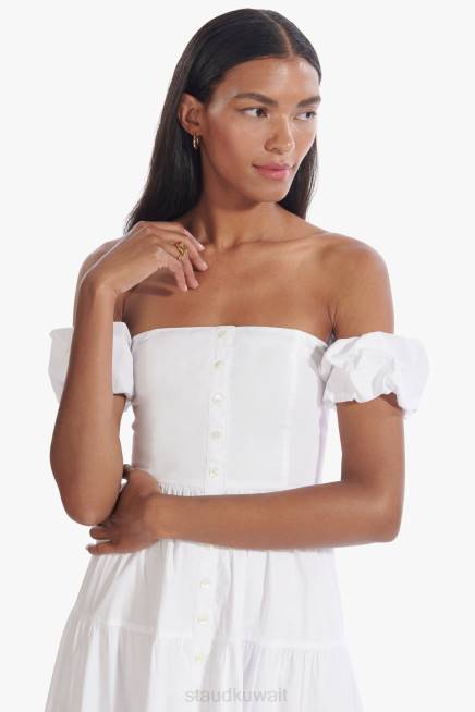 STAUD 42R0311 فستان إليو نحيف أبيض ملابس
