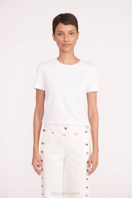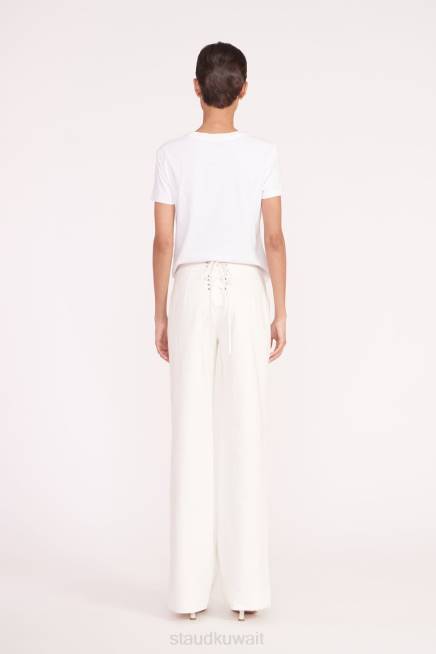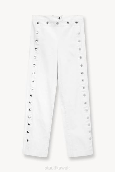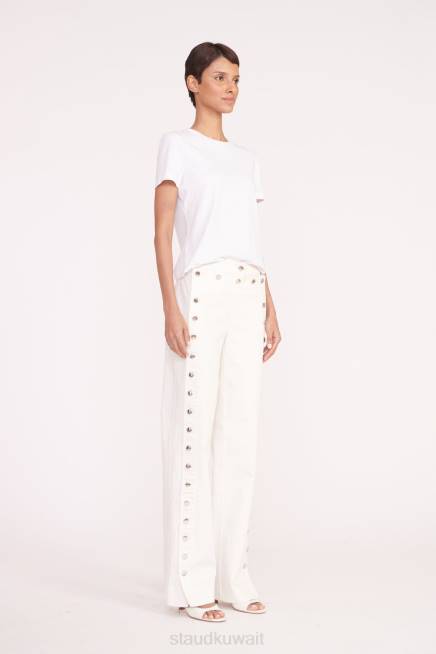 بنطلون بأرجل مستقيمة مصنوع من الدنيم الأبيض ، يتميز الكارتر بإغلاق أمامي برفرف بحار وزر متباين أسفل الساق. P>